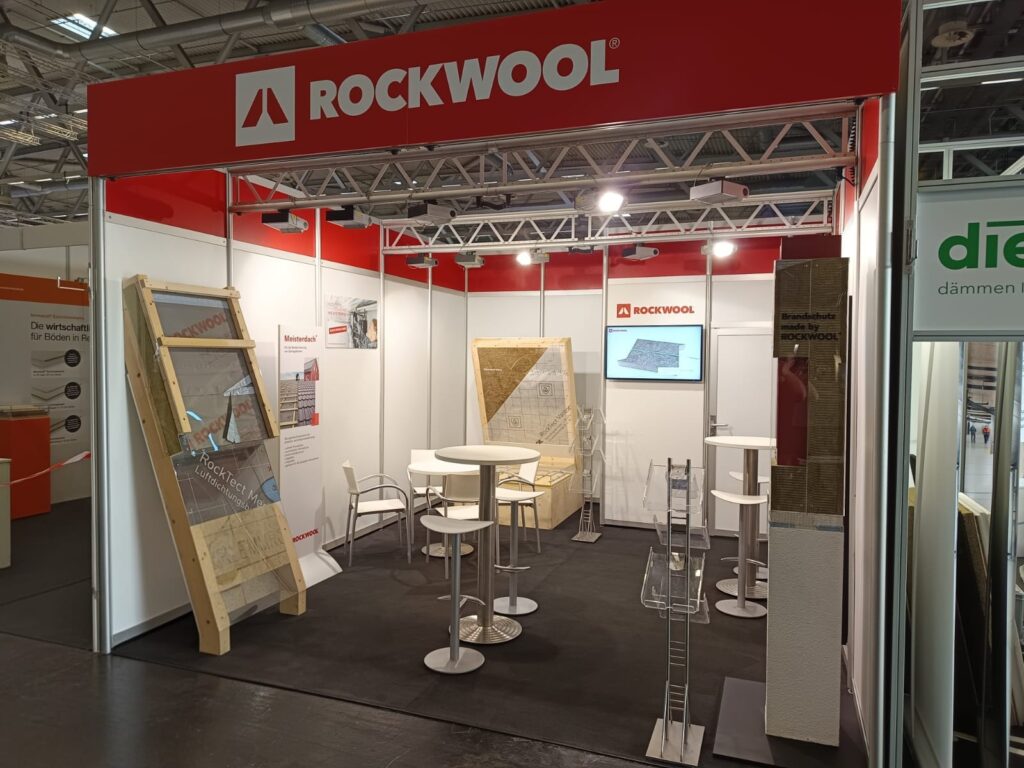 Ein Messestand, der Eindruck macht Auf dem Eurobaustoff Forum durften wir für unseren Kunden ROCKWOOL Deutschland einen Messestand gestalten.  Mit durchdachtem Design und cleveren Details wurde der Stand zu einem besonderen Ort, an dem jedes Element seinen perfekten Platz gefunden hat.